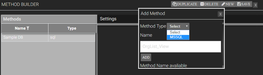 In Method Builder, first we need to add the new Method. In Method Type we are having two methods they are SQL Transaction and API Method Builder.