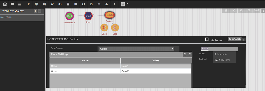 A switch statement is a type of selection control mechanism used to allow the value of a variable or expression to change the control flow of program execution via a multi way branch. In this work flow we have to select switch node then it showing node settings and user can select multiple cases.